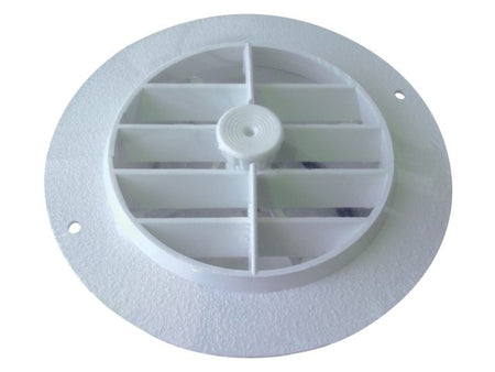 - Info:: Man. no : 62210M, Description : Supply air grill round white (closable), Dimensions : 100mm